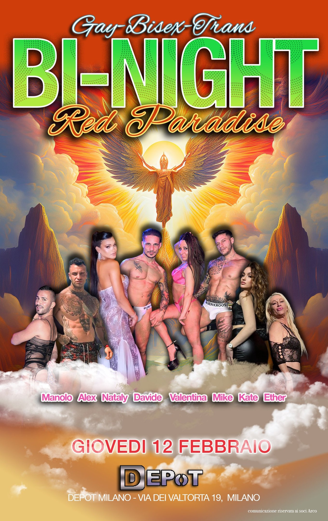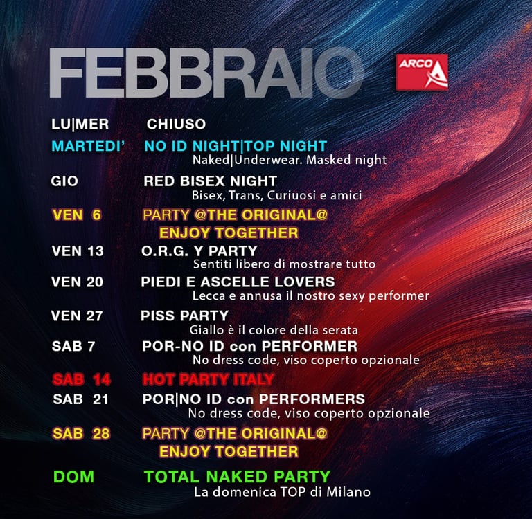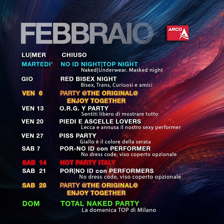 Che tu sia gay, bisex, transex, trav o solo curioso, sei invitato a questa serata folle e bollente. Tutti i generi, tutti i sessi, tutte le voglie confluiscono in questa nottata nel Club più alternativo di Milano. Dominatrix in cerca di schiavi da calpestare, coppie scambiste, ragazzi che sembrano ragazze e donne che vogliono tutto e tutti... ogni cosa è concessa e benvenuta. Lasciati finalmente andare per quello che veramente sei e vuoi, esplora il club in cerca della situazione giusta per te o rimani nella zona bar a bere e fare due chiacchere. In ogni caso sarà un esperienza unica.