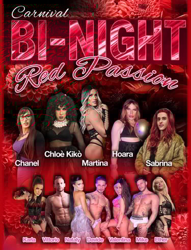 Evento bisex speciale dal titolo Red Passion. Passione rossa o passione xxx, dove tutto può accadere. Una serata con 5 guest star avolose ospiti.